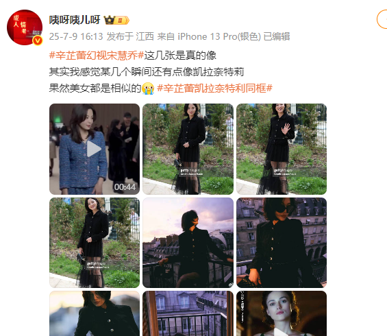 不少网友直呼这套的造型很像是韩国女星宋慧乔。
