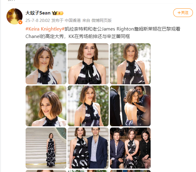 穿着标志性的香奈儿的小香风外套,短发的造型看起来端庄又很优雅。